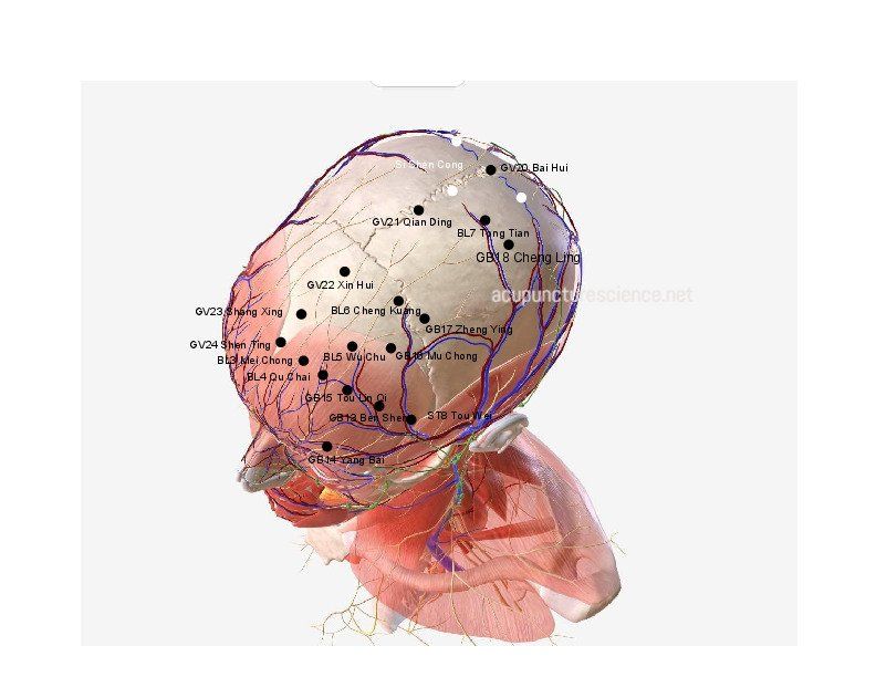 Here the headache is generally mild or there is cold pain. It must be accompanied by images of vacuity cold such as fear of cold, cold limbs, pale or dusky complexion, a withered essence-spirit, a pale or dark purple and render tongue and a deep and slow or fine and weak pulse. In addition, there may be signs of unsettling of the yang qi of the viscera sign as heat palpitations, pain in the heart and chest, torpid intake, abdominal cold and pain and sloppy stools, or ringing ears and cold soreness of the lumbus and knees.
